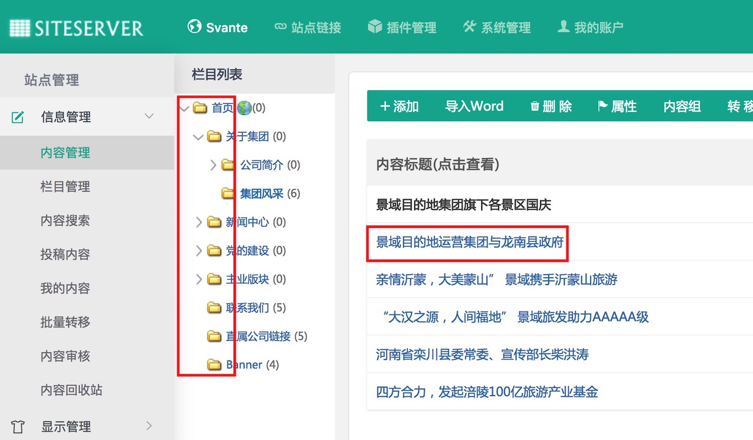 如前图所示,在内容管理菜单右边出现的内容列表界面,点击某个内容的标题即可浏览此内容的前台页面。